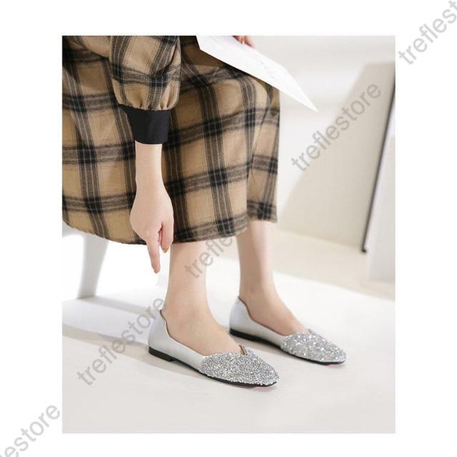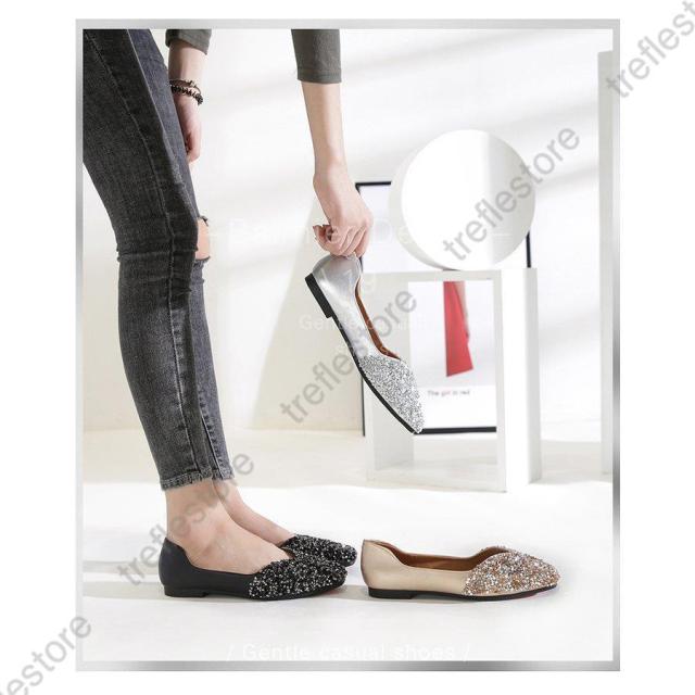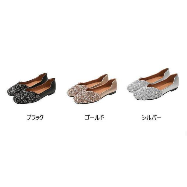 【ポイント5倍!】パンプス フラットパンプス レディース 春夏 パンプス スクエアトゥ 美脚 履きやすい 痛くない 靴 レディースシューズ パーティー 結婚式 キラキラ オシャレ