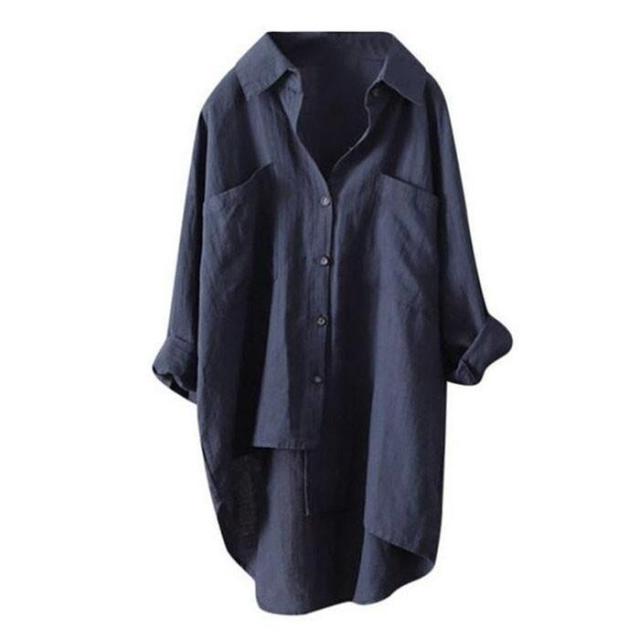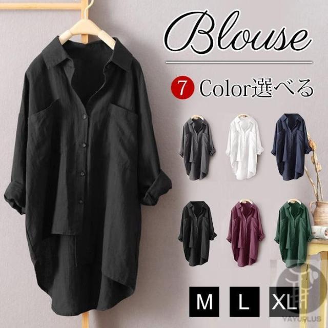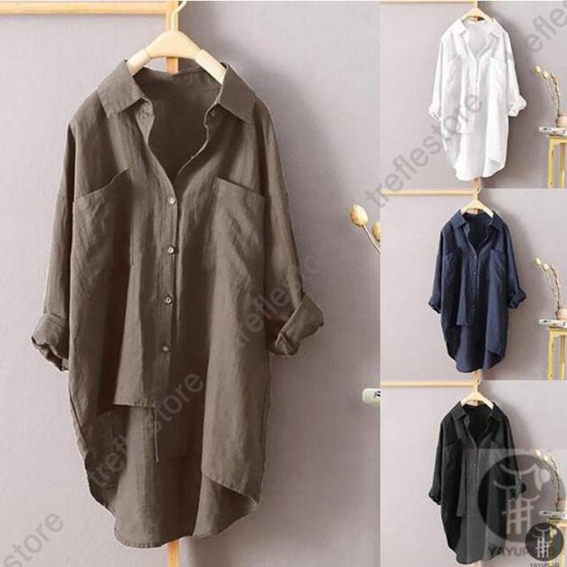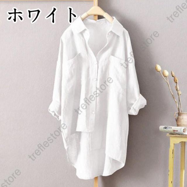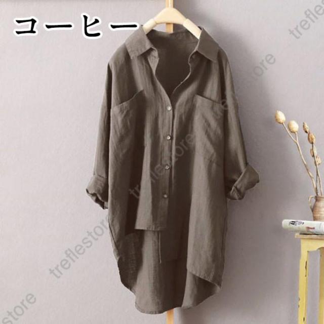 【ポイント5倍!】アシンメトリーシャツ レディース 綿麻 リネン ブラウス シャツブラウス 長袖 襟付き ボタンシャツカジュアル 夏秋 代引不可