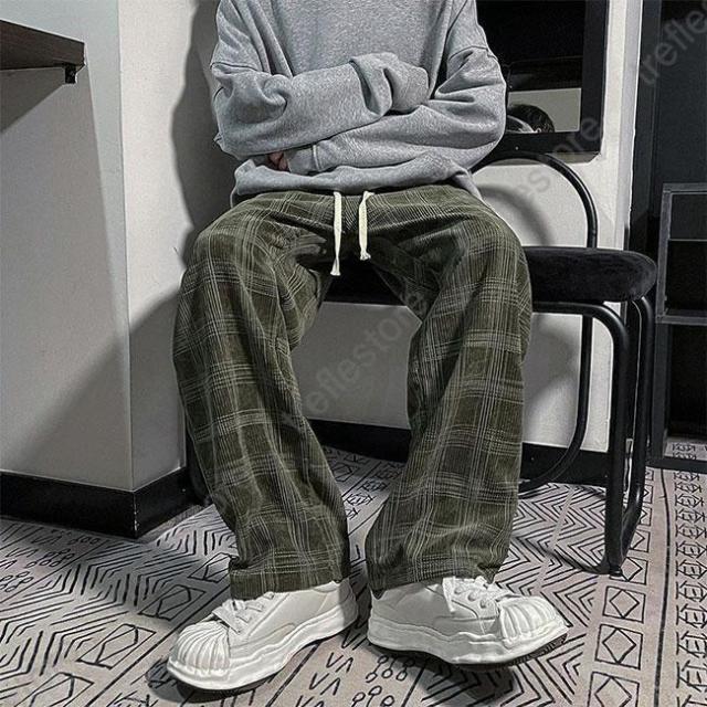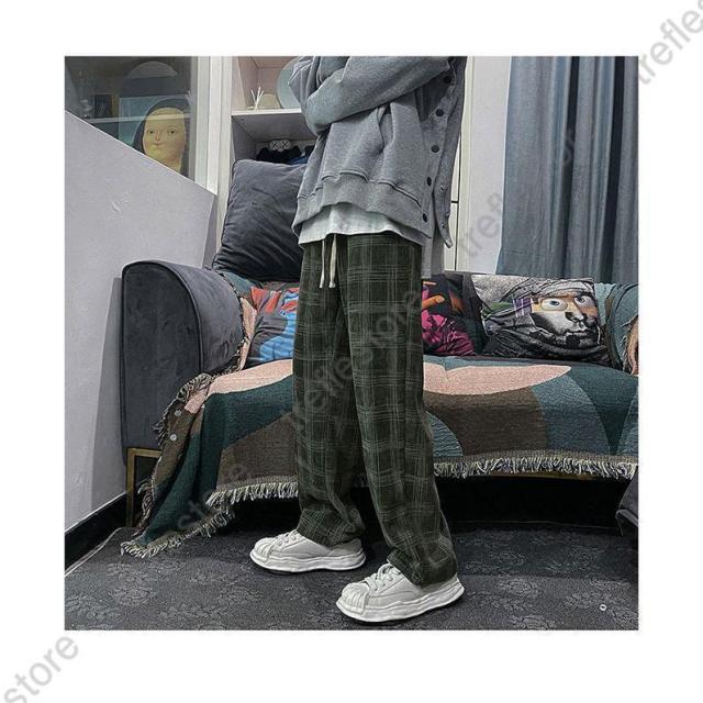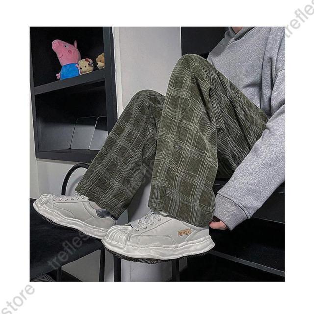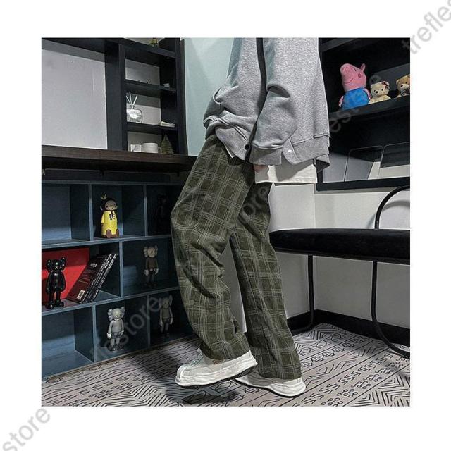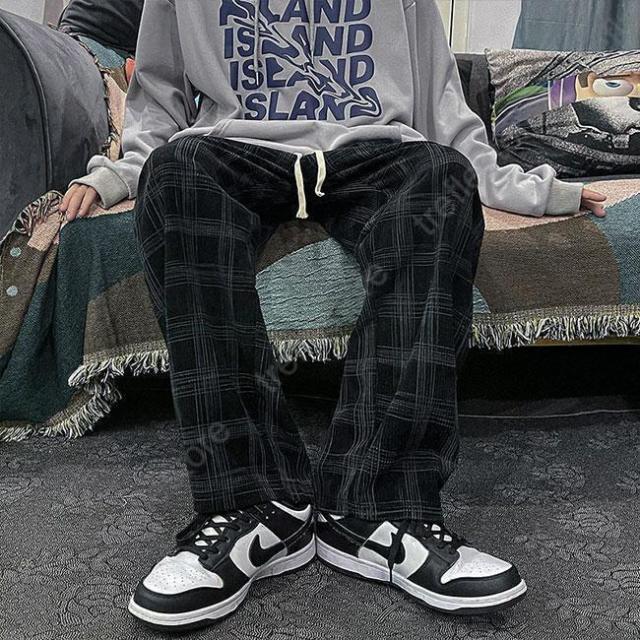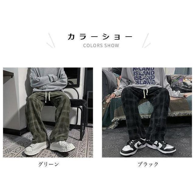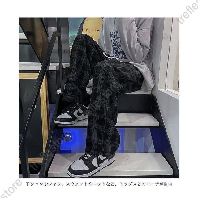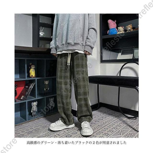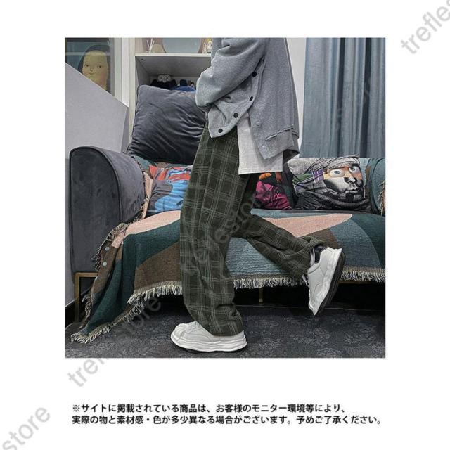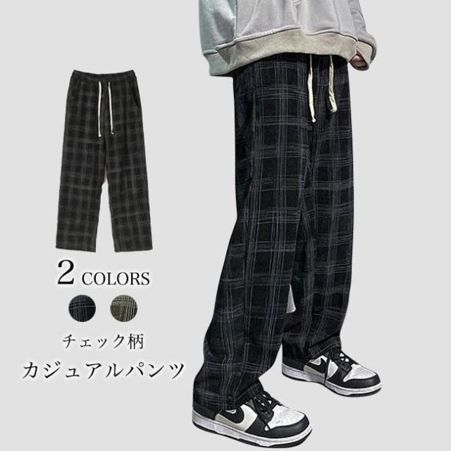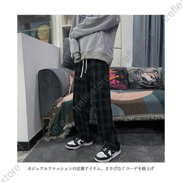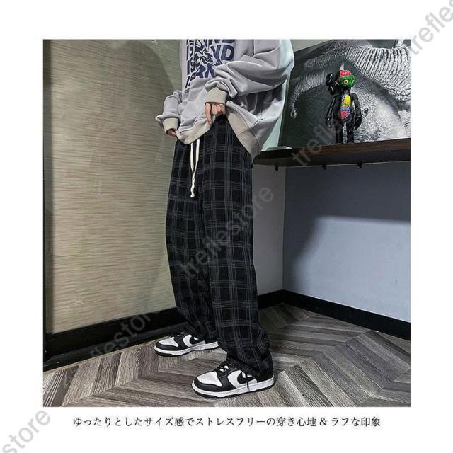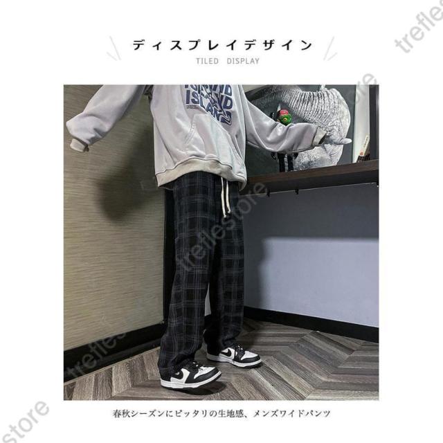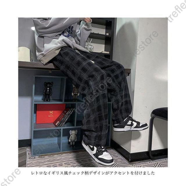 【ポイント5倍!】チェック柄 カジュアルパンツ メンズ 春 長ズボン ゆったり ワイドパンツ 秋 ロングパンツ レトロ チェック柄パンツ おしゃれ ストレートパンツ