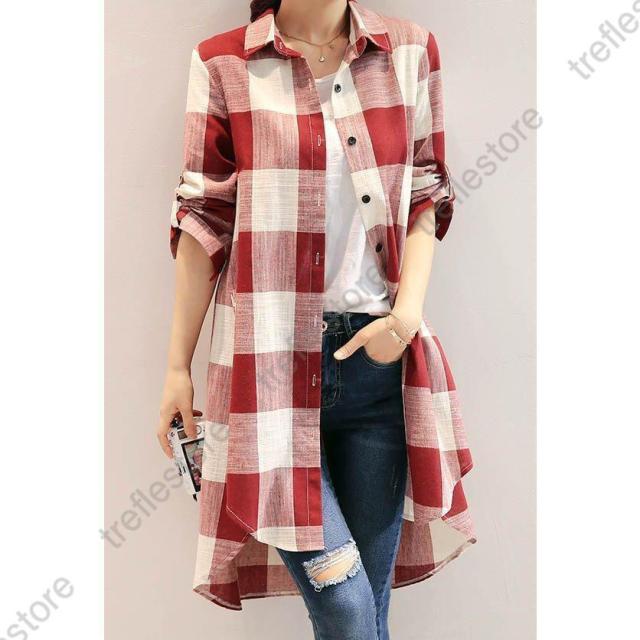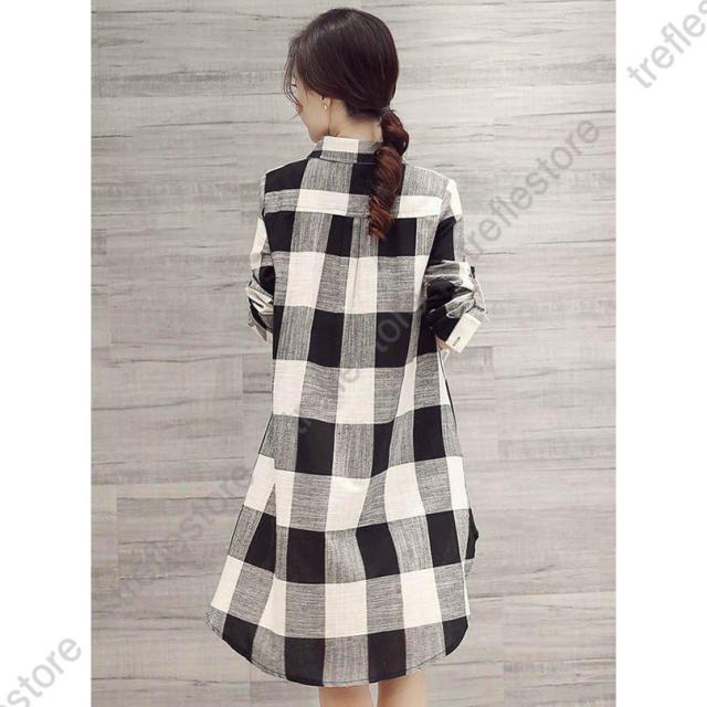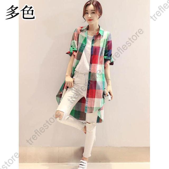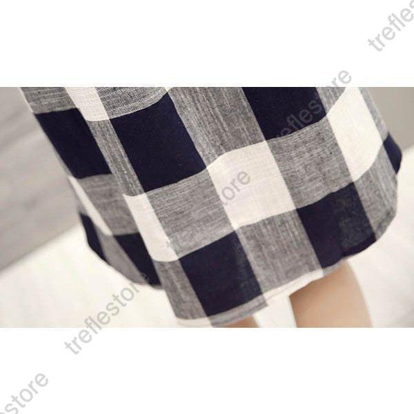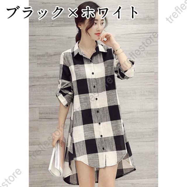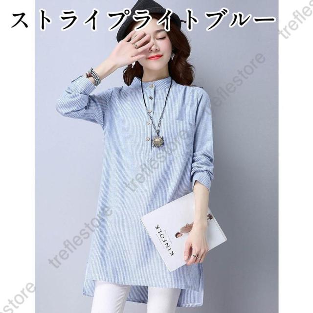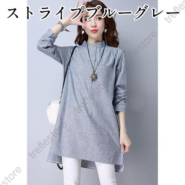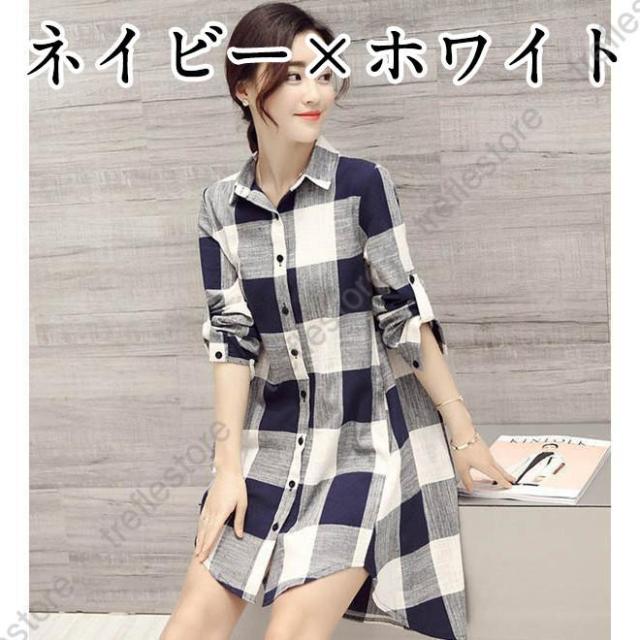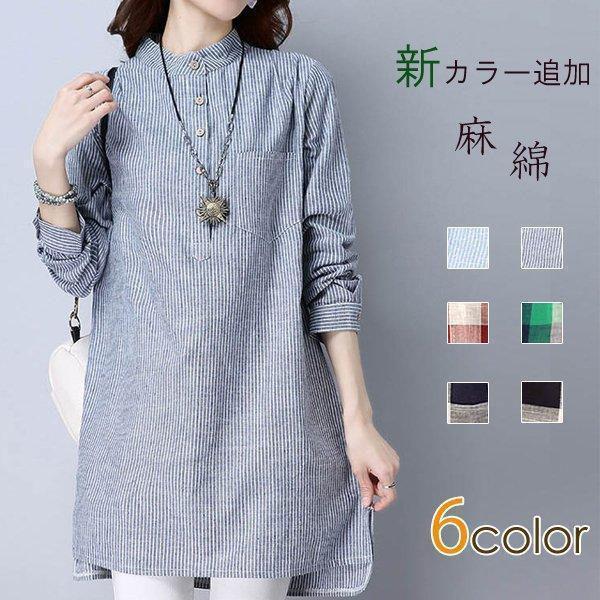 【ポイント5倍!】チュニック シャツ ワンピース チェックワンピース ストライプ柄 チェック柄 麻綿混紡 マリン風 フロントボタン セール