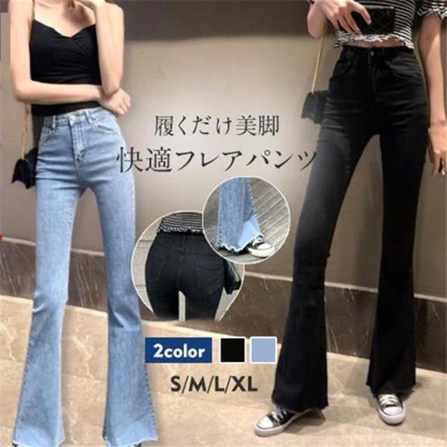 【ポイント5倍!】フレアパンツ デニムパンツ レディース カットオフ スーパーストレッチ ベルボトム ブーツカット ジーンズ 脚長 美脚パンツ フレアジーンズ