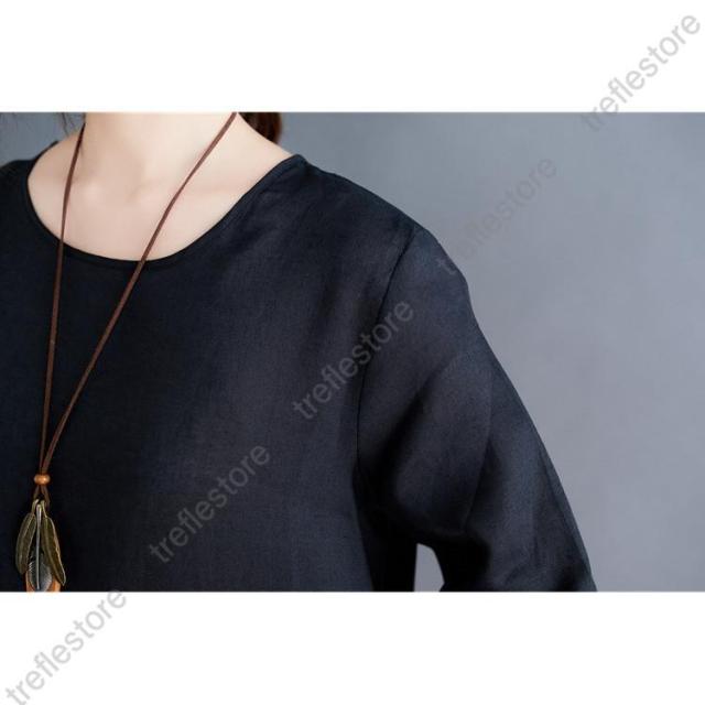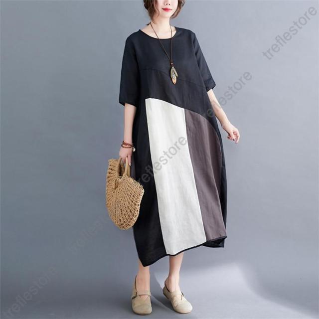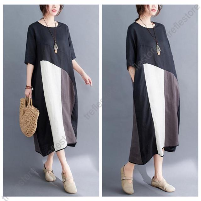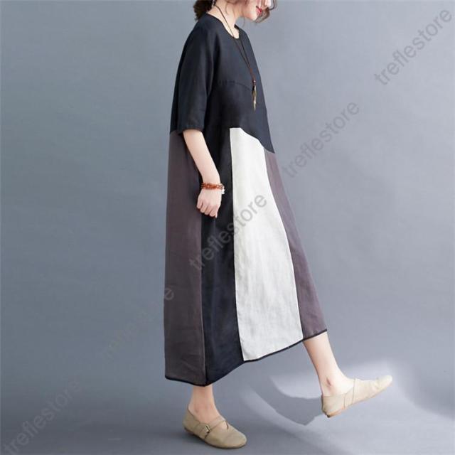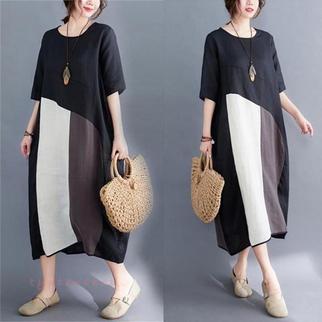 【ポイント5倍!】夏ワンピース 50代 ロングワンピースレディース40代 リネンシャツワンピース カジュアル 体型カバー Uネック 五分袖ワンピース 同窓会 通勤 ゆったり