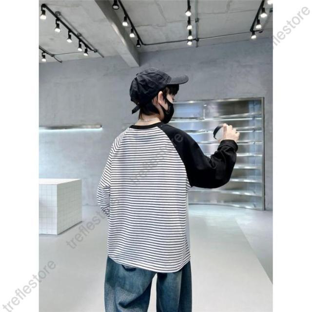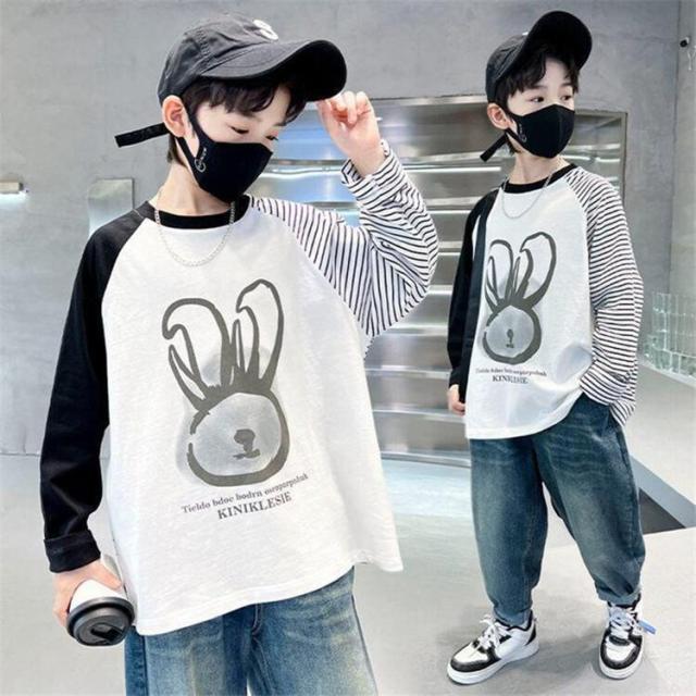 【ポイント5倍!】子供服 長袖Tシャツ キッズ 男の子 キャラクター ストライプ 長袖 ゆったりトップス カジュアル カットソー ジュニア おしゃれ