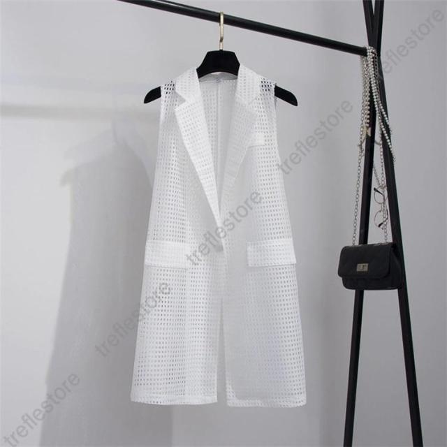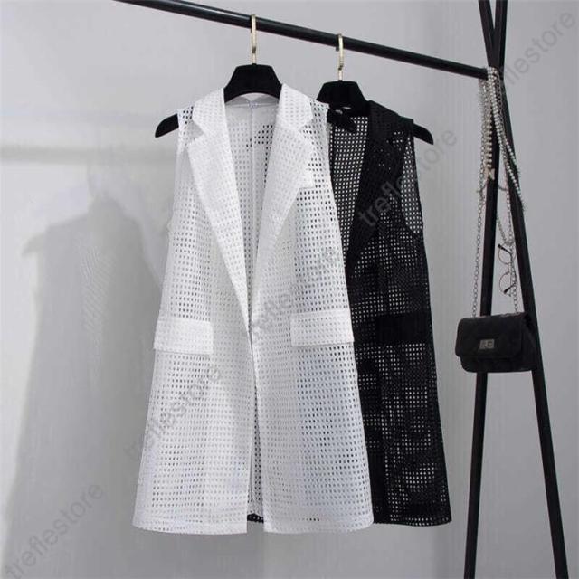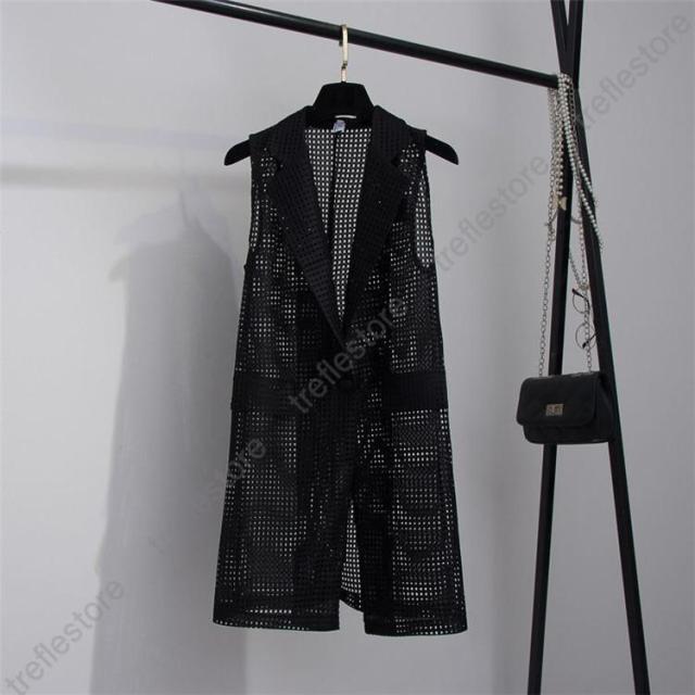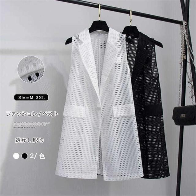 【ポイント5倍!】ベスト ロングベスト レディース メッシュ 夏 涼しい ノースリーブコート 透け感 トップス 袖なし フォーマル コーディネート スーツベスト