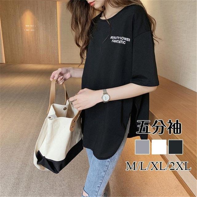 【ポイント5倍!】Tシャツ レディース 春夏 半袖 カットソー 無地 五分袖 綿 コットン シンプル 着回し『汗ジミ防止ゆるっとUネックTシャツ』