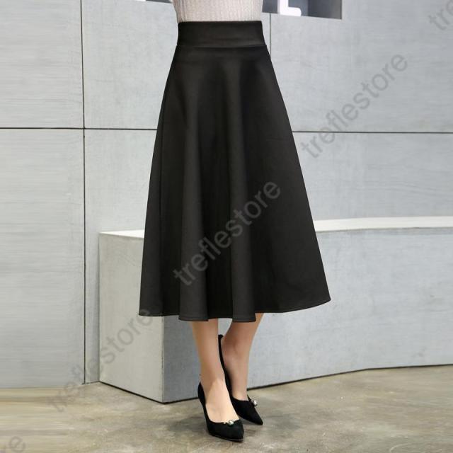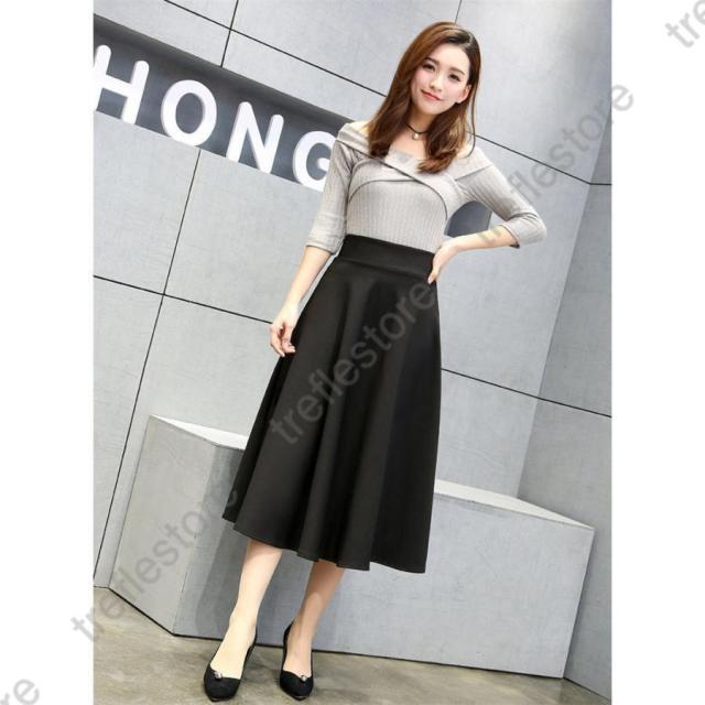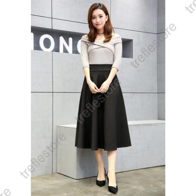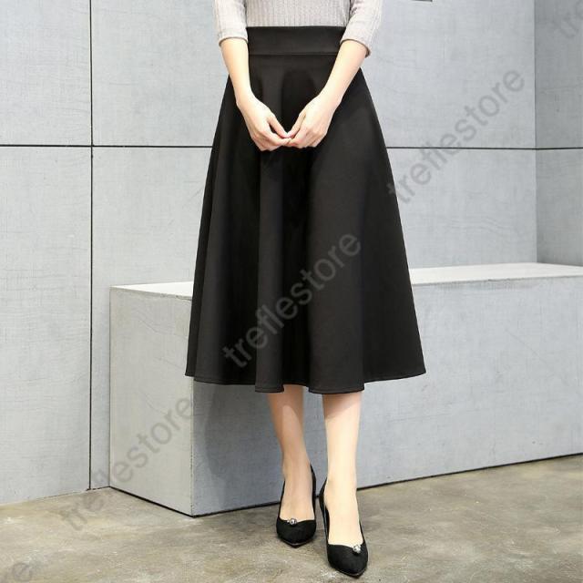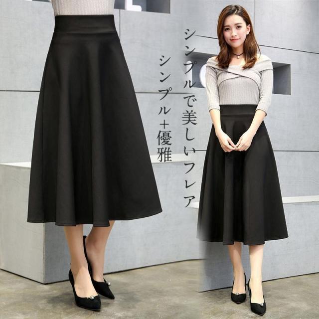 【ポイント5倍!】フレアスカート ミモレ丈 レディース 膝丈 スカート aライン ひざ丈 ヘムスカート プリーツ aラインスカート 冬 秋 春 夏 黒 無地 膝丈