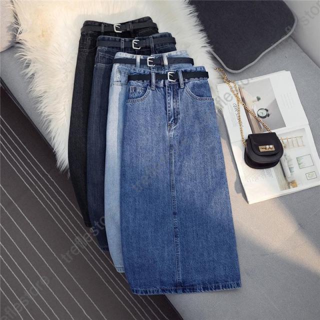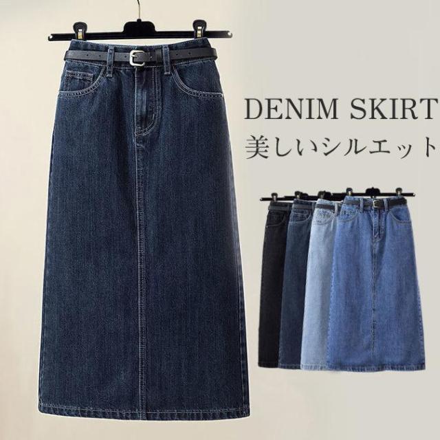 【ポイント5倍!】デニムスカート レディース ロング丈 タイトスカート ロング バックスリット ボトムス 可愛い お洒落 無地 Aライン 春夏秋冬 通勤 着やせ