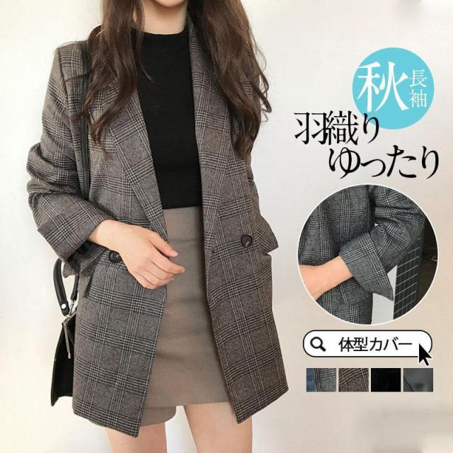 【ポイント5倍!】ジャケット レディース 春 アウター コート 裏地あり 40代 テーラードジャケット ミディアム丈 羽織り グレンチェック柄 お洒落 大きいサイズ ゆったり