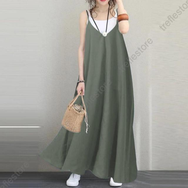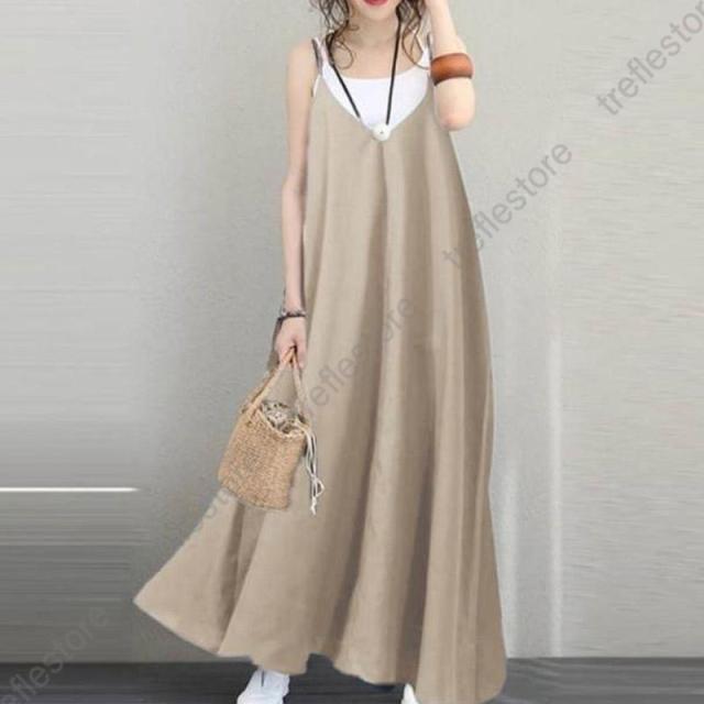 【ポイント5倍!】レディース 夏 春 キャミワンピ ロングワンピース ジャンパースカート Aラインワンピース ゆったり サロペットワンピース 無地