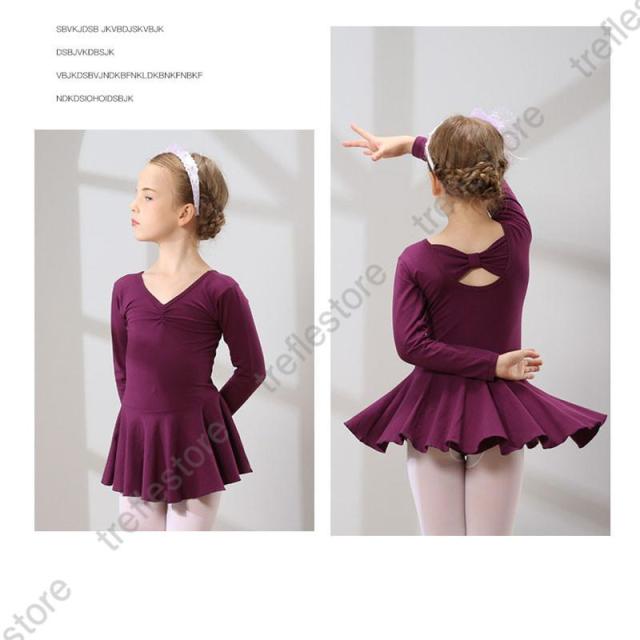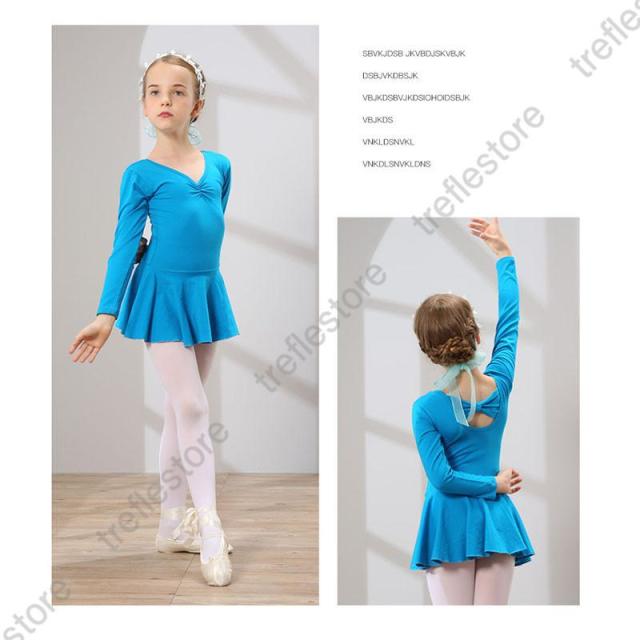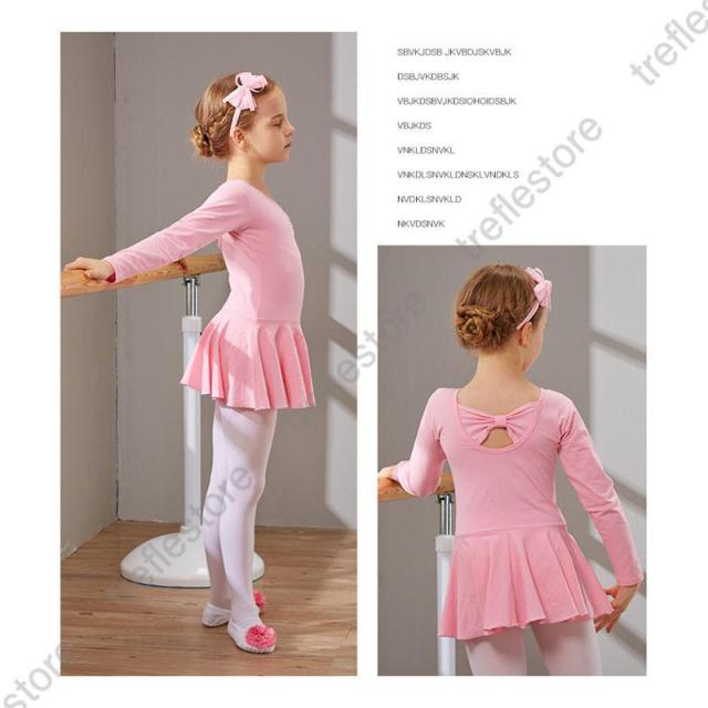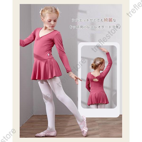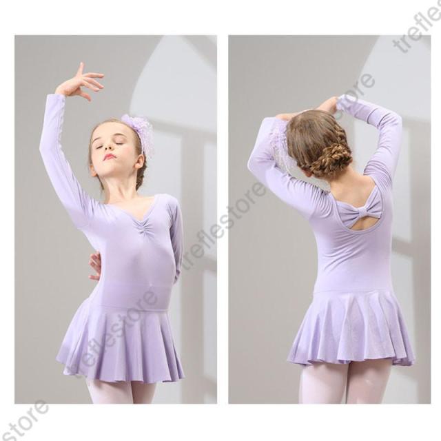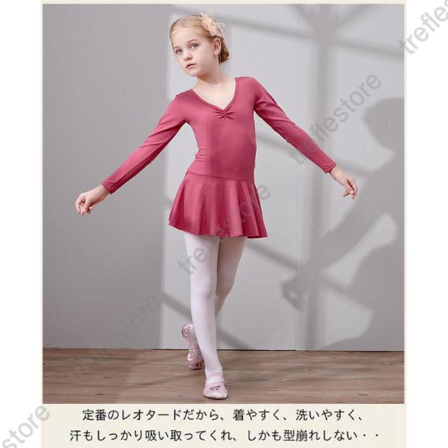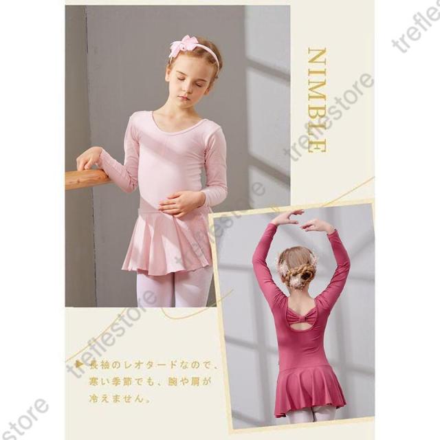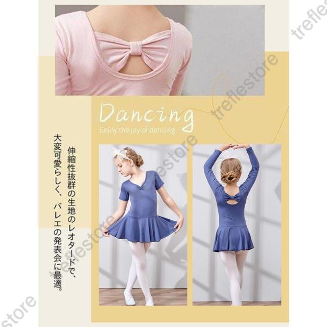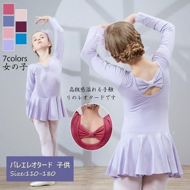 【ポイント5倍!】キッズ バレエ ワンピース 後ろリボン 長袖 レッスン レオタード 子供用 習い事 練習着 両手を動かしやすい 幼児 小学校 発表会 イベント用 体操服 練習 こども