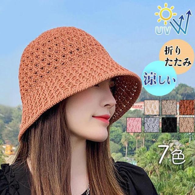 【ポイント5倍!】帽子 レディース 麦わら帽子 つば広 uvカット 自転車 ストローハット 折りたたみ 日焼け防止 バケットハット 小顔 春夏