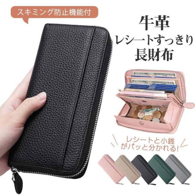 【ポイント5倍!】本革 長財布 レディース ギャルソン 大容量 多機能 財布 牛革 ウォレット 大きく開く カード収納 小銭入れ レシート コインスルー式 自動振り分け