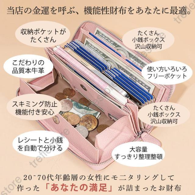 【ポイント5倍!】本革 長財布 レディース ギャルソン 大容量 多機能 財布 牛革 ウォレット 即納 大きく開く カード収納 小銭入れ レシート コインスルー式 自動振り分け