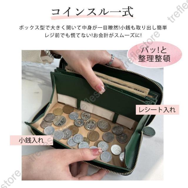 お札、小銭、カード、レシート、領収証、通帳も全部まとめて収まる大容量。