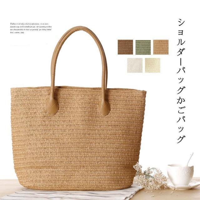 【ポイント5倍!】かごバッグ トートバッグ 夏 大容量 かご バッグ 編みバック レディースバック 無地 かばん カバン ショルダーバッグ 春 コーデ 5色 夏