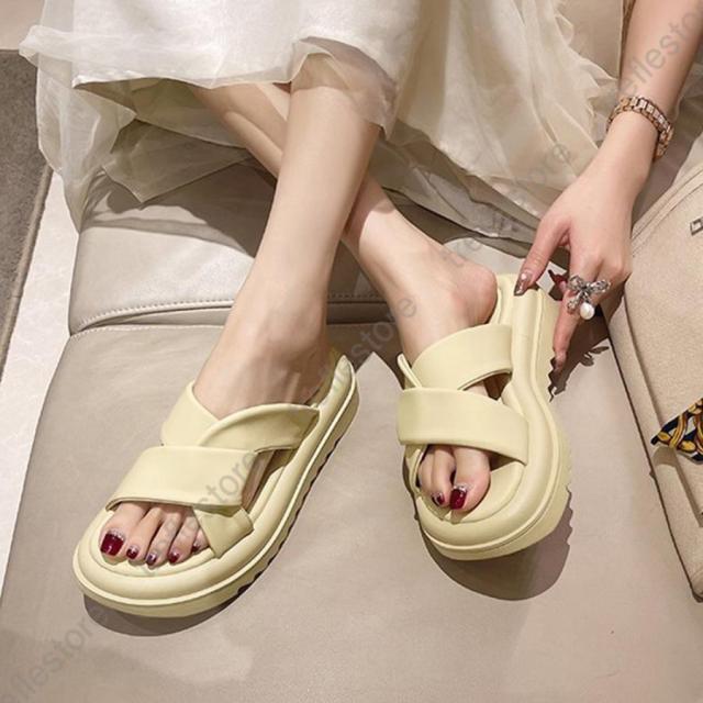 おしゃれなデザインながらも、カジュアルな服装にも合わせやすい厚底サンダル