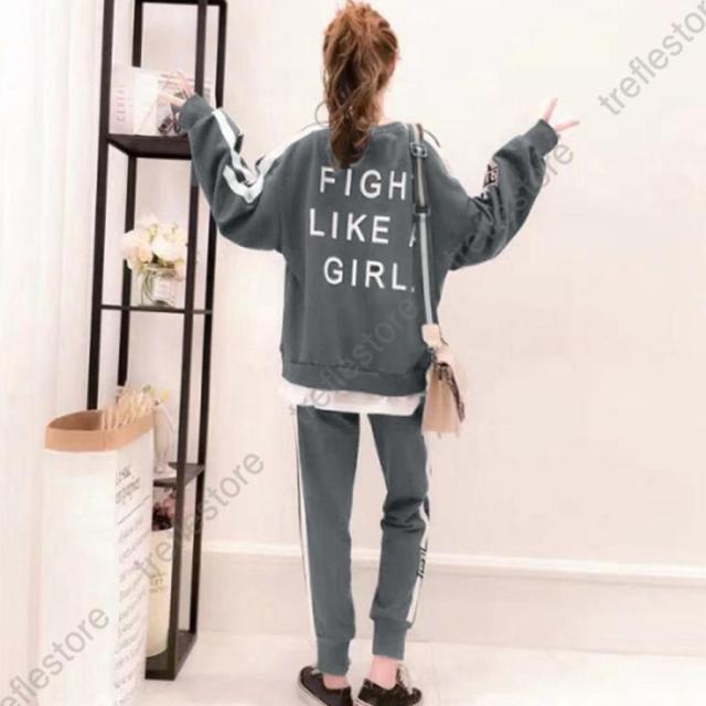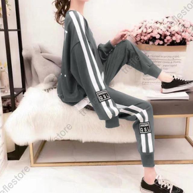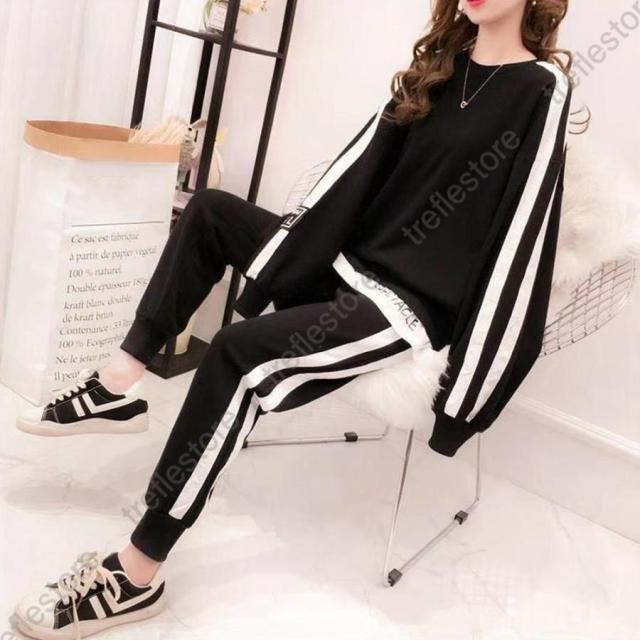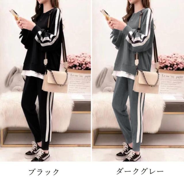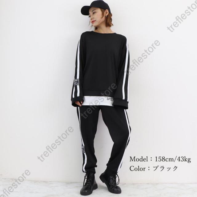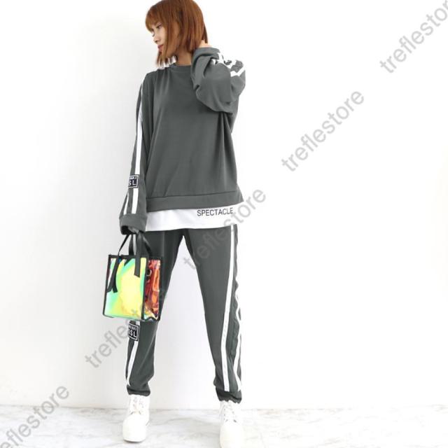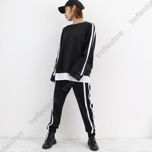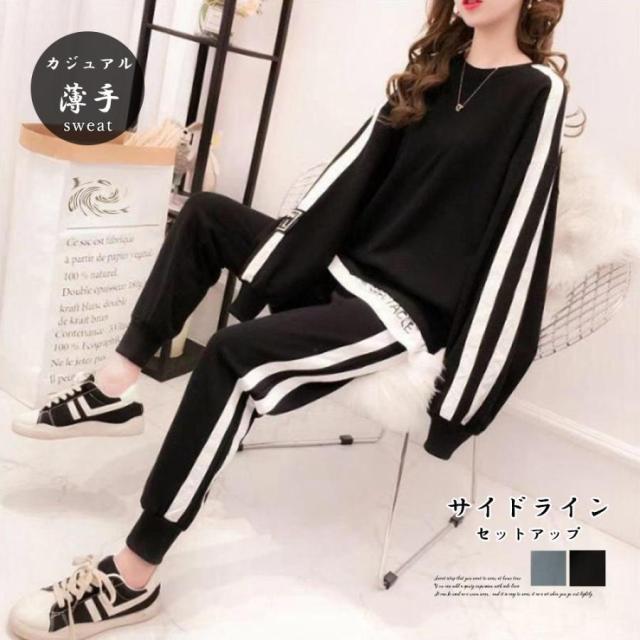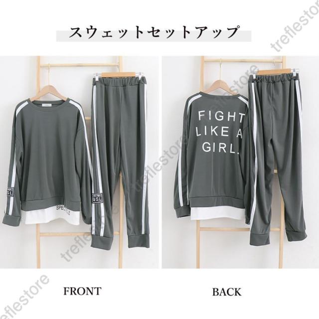 レディース カジュアル バックロゴ トレーナー 2点セット サイドライン ジャージ 上下セット オルチャン楽ちんパンツ