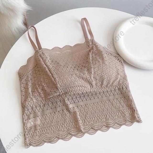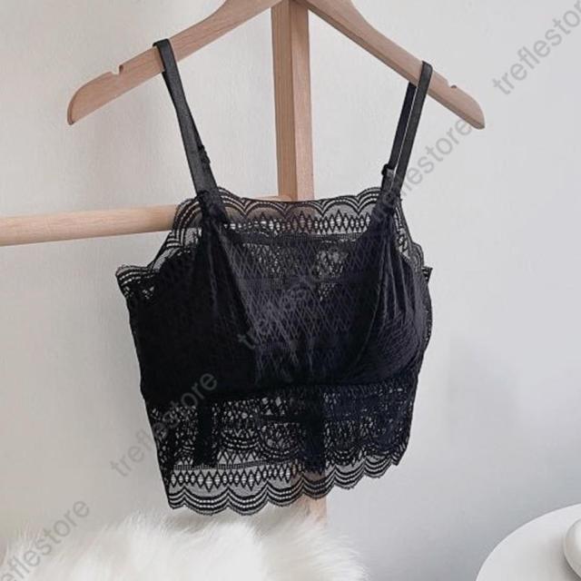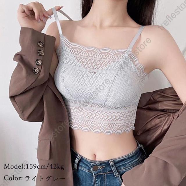 ノンワイヤーブラ 透け感 カップ付きインナー セクシー ブラジャー レース 韓国風 おしゃれ ブラキャミ ブラトップ
