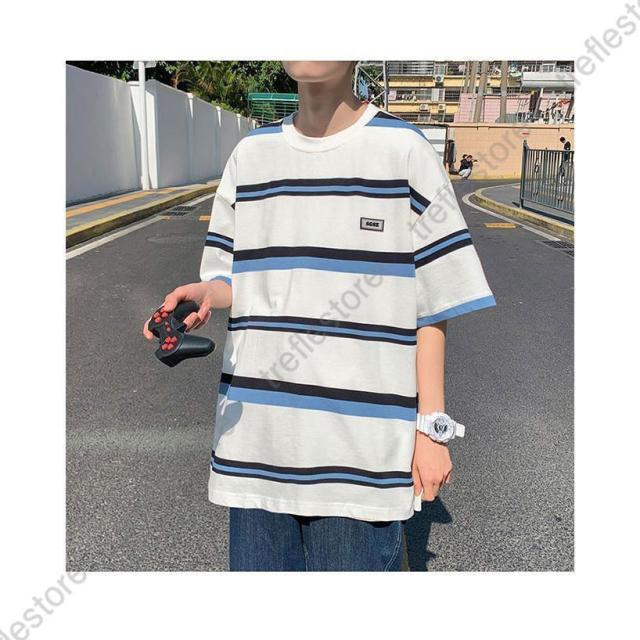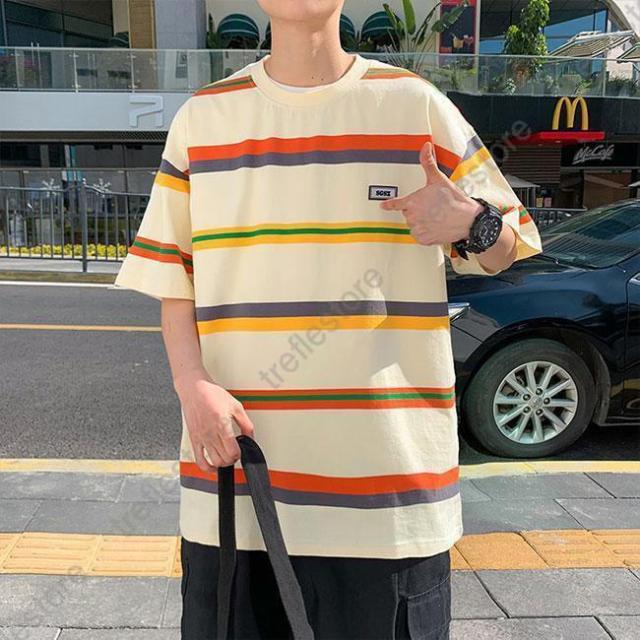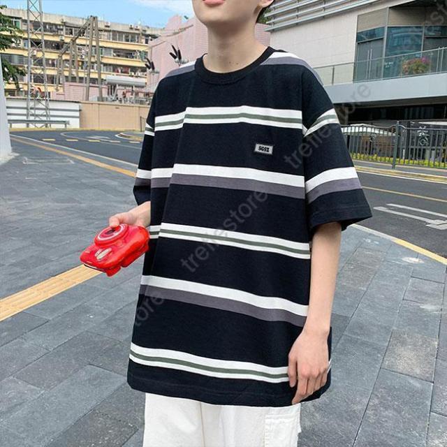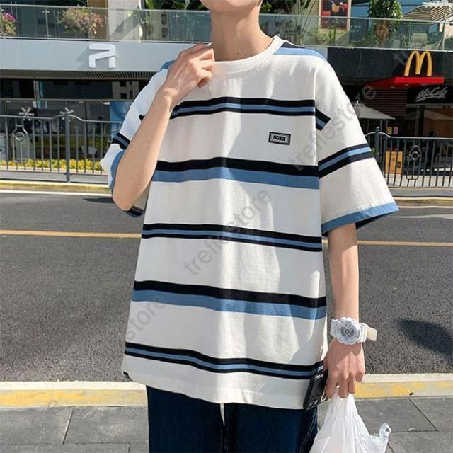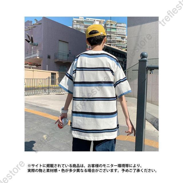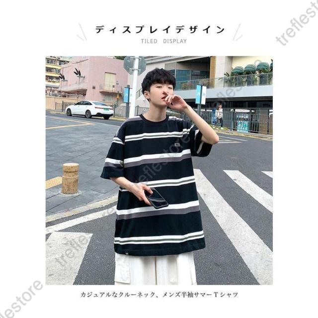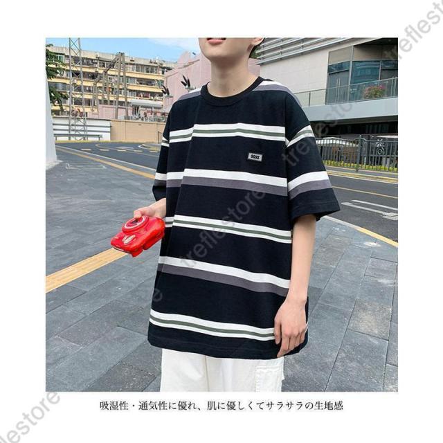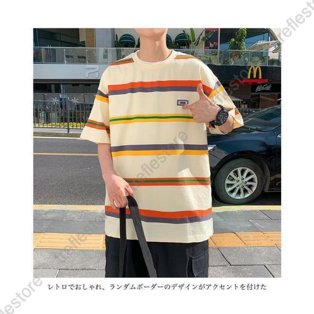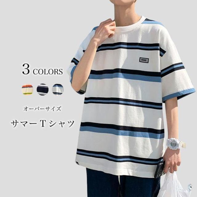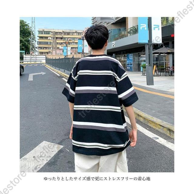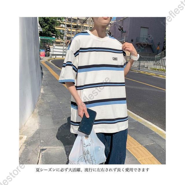 【ポイント5倍!】ボーダーTシャツ 半袖 夏 メンズ 半袖Tシャツ オーバーサイズ ボーダー柄 Tシャツ ドロップショルダー レトロ 爽やか 夏Tシャツ ゆったり サラサラ