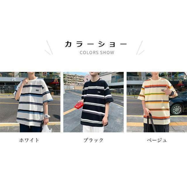 ボーダーTシャツ 半袖 夏 メンズ 半袖Tシャツ オーバーサイズ ボーダー柄 Tシャツ ドロップショルダー レトロ 爽やか 夏Tシャツ ゆったり クルーネック サラサラ 快適 サマーTシャツ カットソー ホワイト ブラック ベージュ