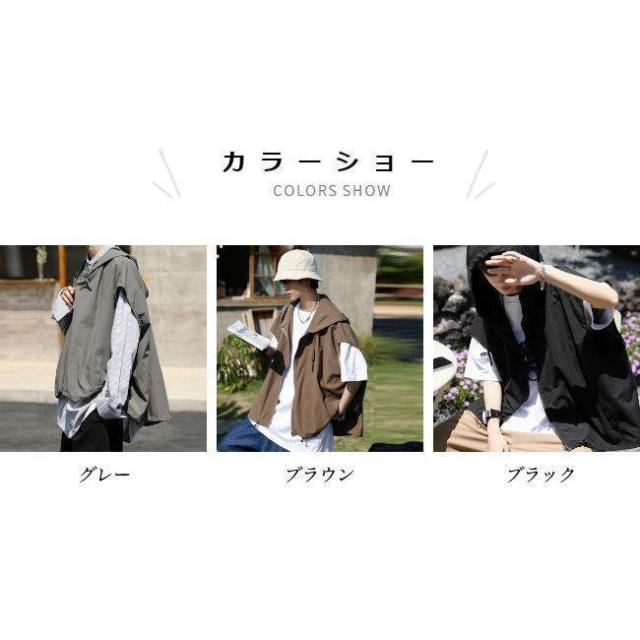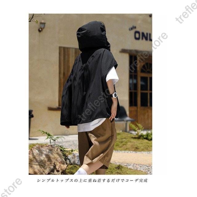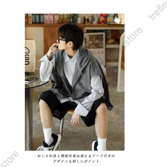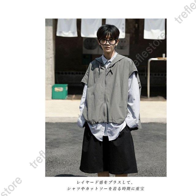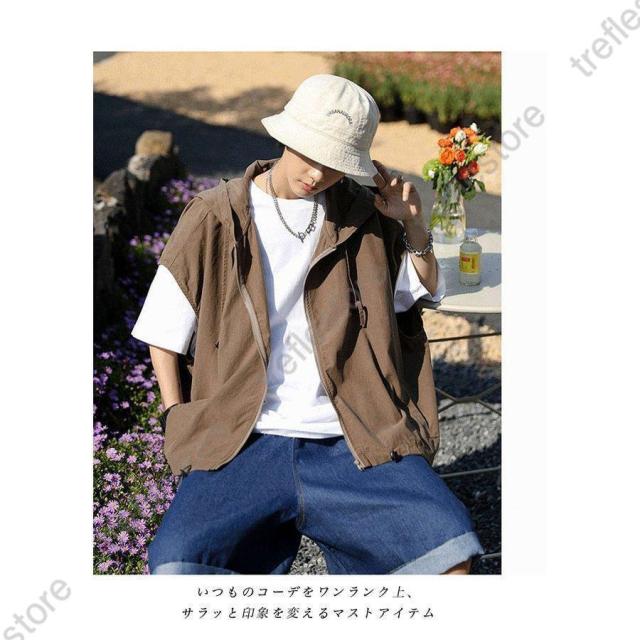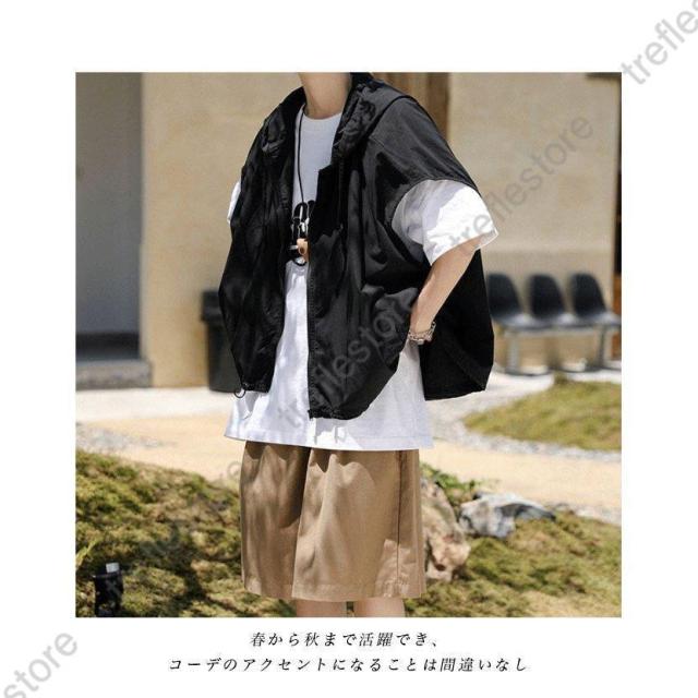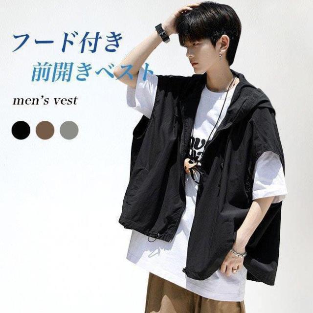 【ポイント5倍!】ベスト フード付き メンズ ジレベスト 前開き チョッキ フード付きベスト サマーベスト ゆったり ジレ アウター ノースリーブ 夏 春 秋