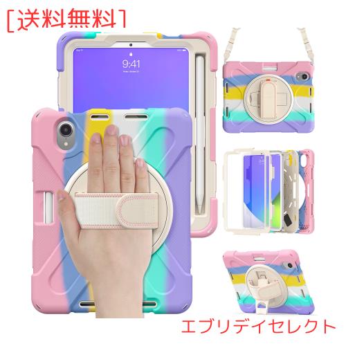 カラフル iPad Mini 6 iPad Mini 7 ケース 斜め掛け iPad mini A17 Pro カバー 360°回転 スタンド ショルダーストラップ ハンドベルト i