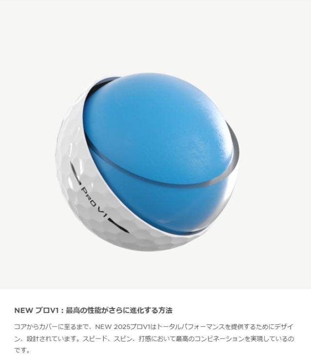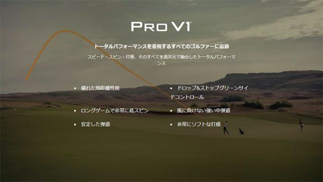 ≪Pro V1≫ プロV1は、スコアアップを目指すすべてのプレーヤーにとって卓越したトータルパフォーマンスを発揮するゴルフボールです。 プロV1は、中弾道の飛び、ロングゲームでスピン量を抑え、ショートゲームで優れたスピンコントロール性能を発揮し、ソフトな打感を求めるプレーヤーにおすすめです。 独自のディンプルパターンによって、プロV1はプロV1xよりも低めの弾道となります。 また、よりソフトなグラディエントコアが、プロV1xよりもソフトな打感とやや少なめのスピン量を生み出します。
