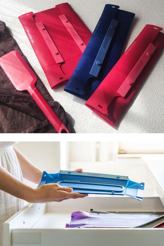 使わない時は折りたたんで引き出しなど狭いスペースでも場所を取らずに収納できます。かさばりがちな製菓道具がたくさんあっても引き出しの中を占領せずに済みます。