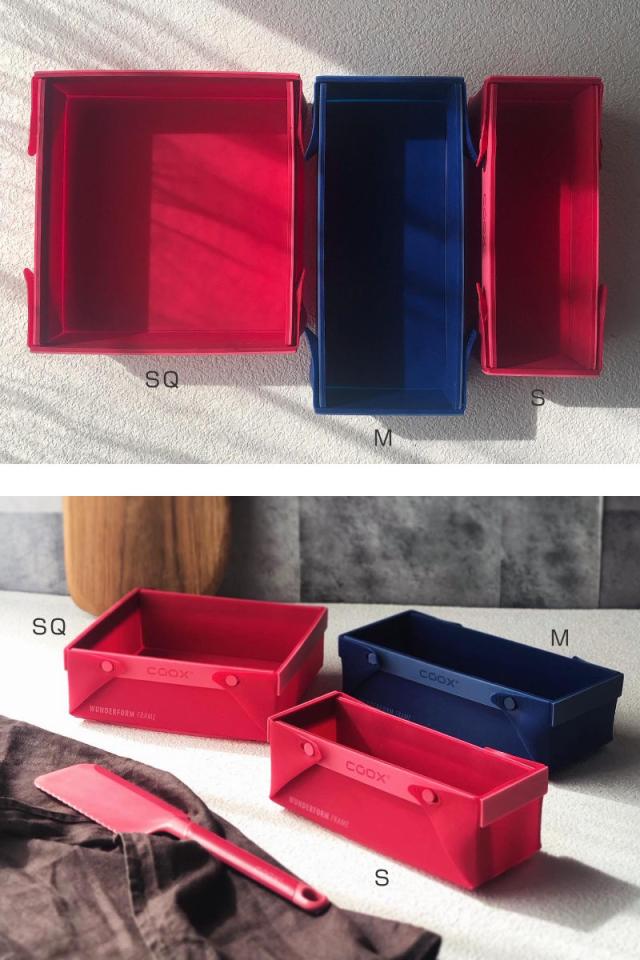 洗いやすいたためる焼き型は、S・M・SQの3サイズ展開です。よく作るお菓子やお料理に合わせてお選びいただけます。