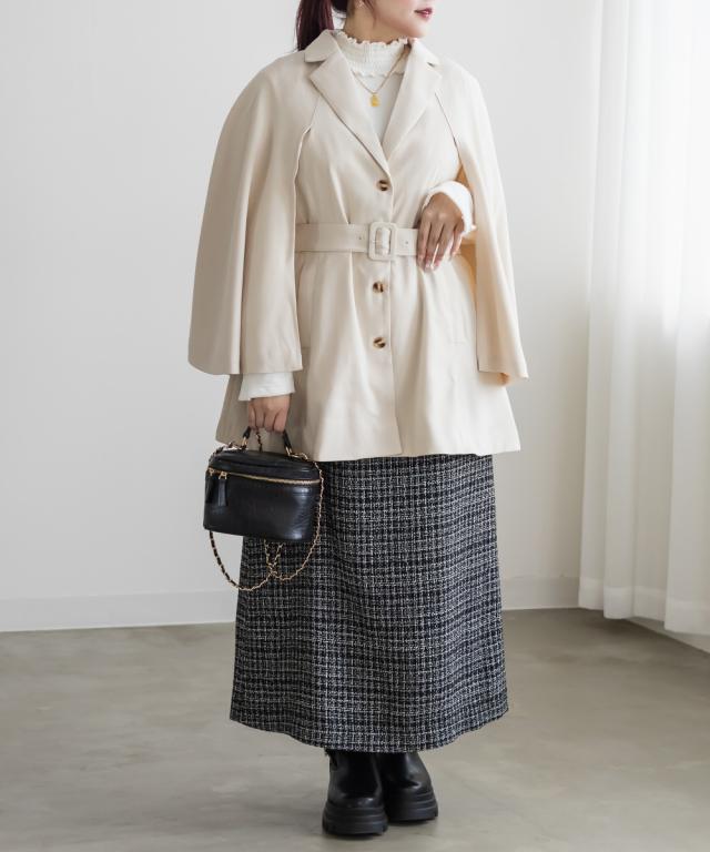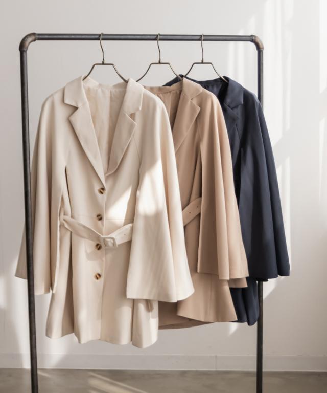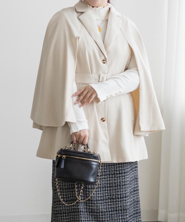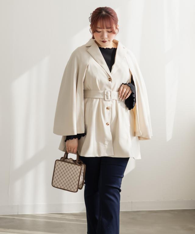 | 3Lを着てちょうどいいサイズ感でした。トレンドをしっかり押さえつつ、裏地付きなど高級感もあり防寒もできるので今季おすすめの優秀アウターです♪真冬は少し寒いかもですが、春秋のアウターとして重宝する1枚。ケープのデザインが今っぽくて、前から見たらテーラードジャケット風でお仕事などきちんとしたシーンにも使いやすいです!トレンチコートなどの代わりににもつかえる印象です。ポケットやベルト付きで実用性もデザイン性もあって可愛いジャケットです!着た時のバランスが可愛いミニボトムコーデやミニワンピースのアウター使いがおすすめです◎ |