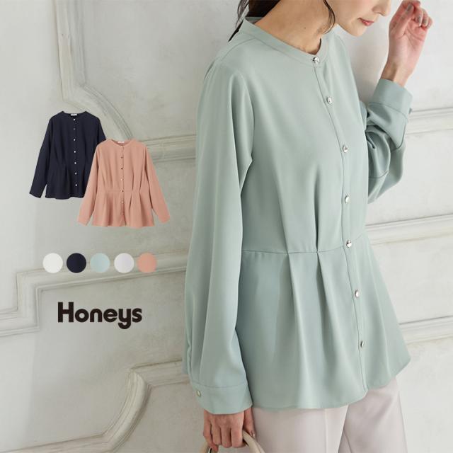 トップス ブラウス 長袖 大きいサイズ オフィス きれいめ ウエストタック 再生ポリエステル ジョーゼット レディース Honeys ハニーズ ウエストタックブラウス