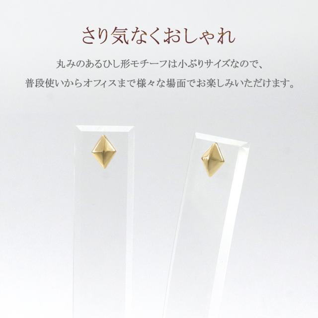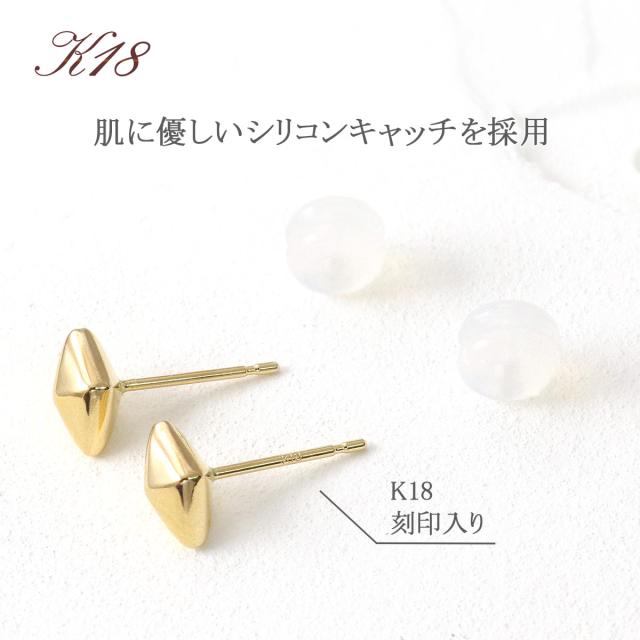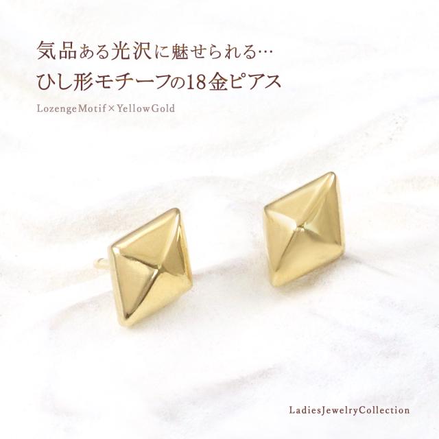 18K ピアス 18金 ゴールド シンプル レディース 菱形 ひし形 モチーフ おしゃれ 小さめ 地金だけ 地金のみ スキンジュエリー スタッド K18 イエローゴールド アクセサリー 地金ピアス 小振り プレゼント お返し ギフト 誕生日 女性 彼女 妻 K18YG 本物 母の日 ギフト 2026