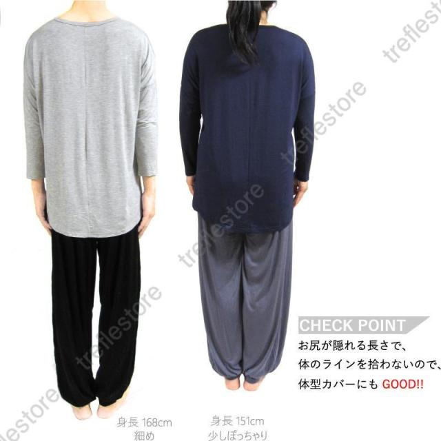 トレンドの前後差のある着丈デザインのドルマンスリーブを、気軽にヨガやダンスに。