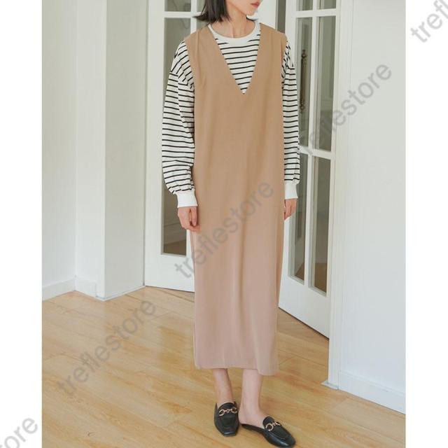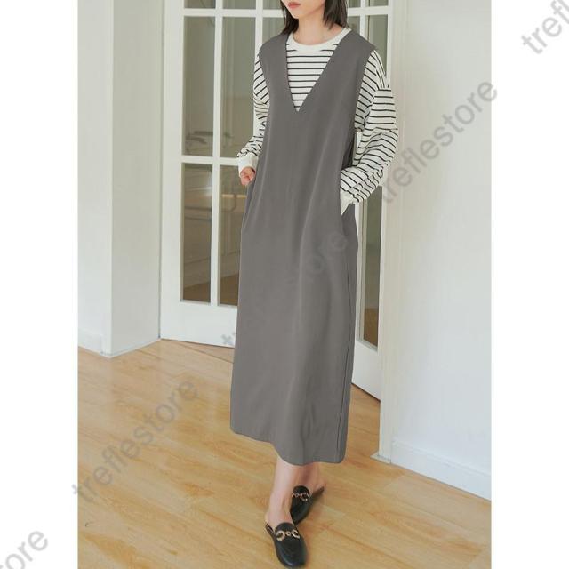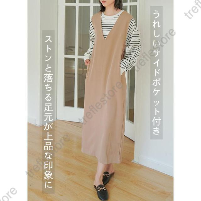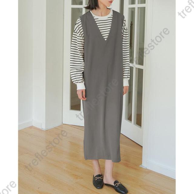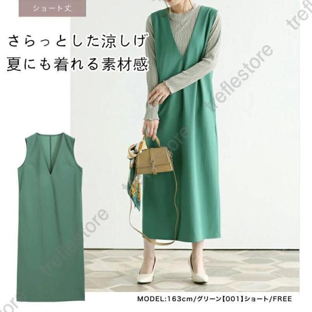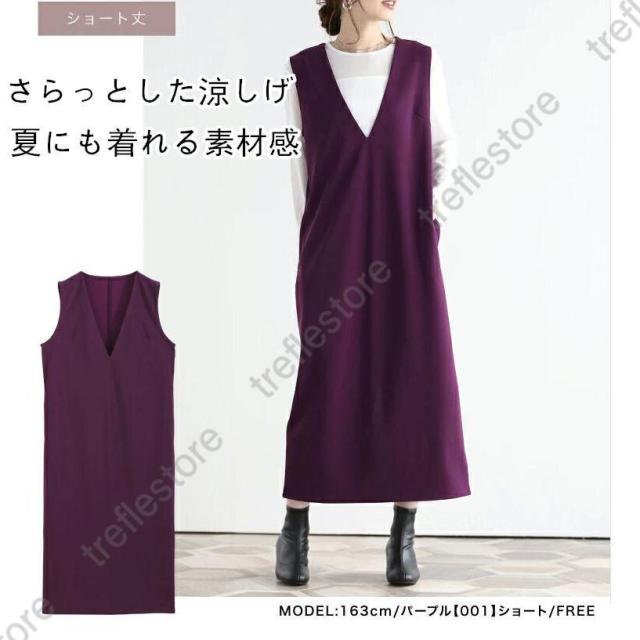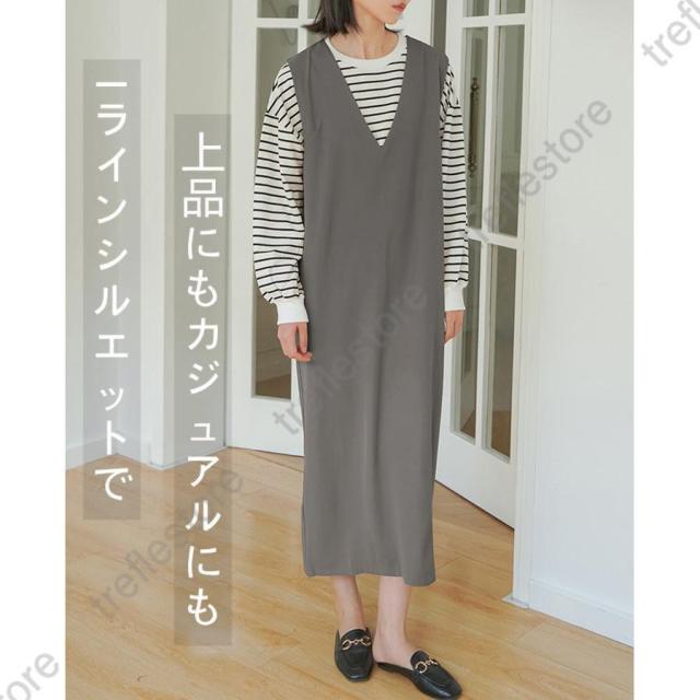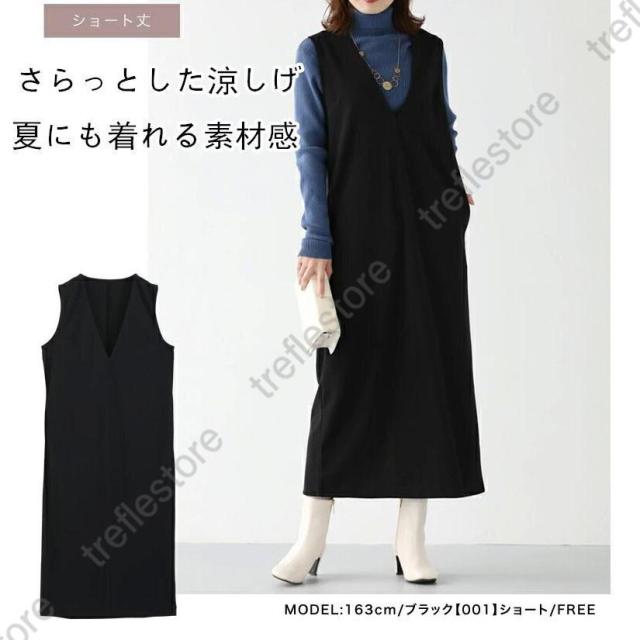 【ポイント5倍!】ワンピース 春夏秋物 袖なし レディース タンクワンピース ジャンパースカート Vネック ノースリーブ スリット さらさらと 涼しい 夏服 ロングワンピース