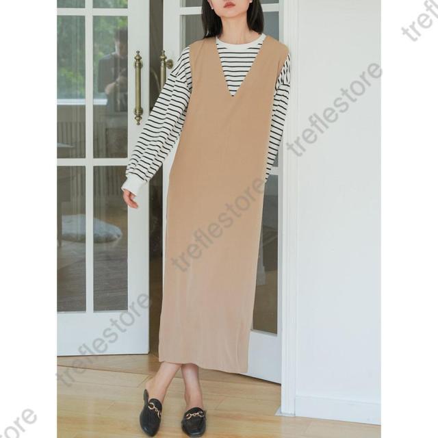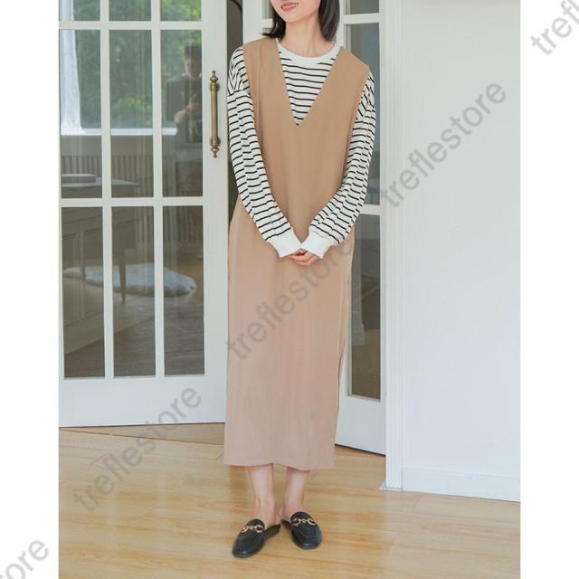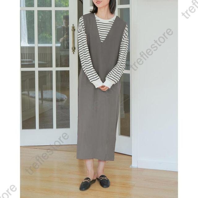 春 秋 重ね着風 レイヤード風ワンピース 30代 大人 カジュアル シンプル 楽チン 夏 卒業式 入学式