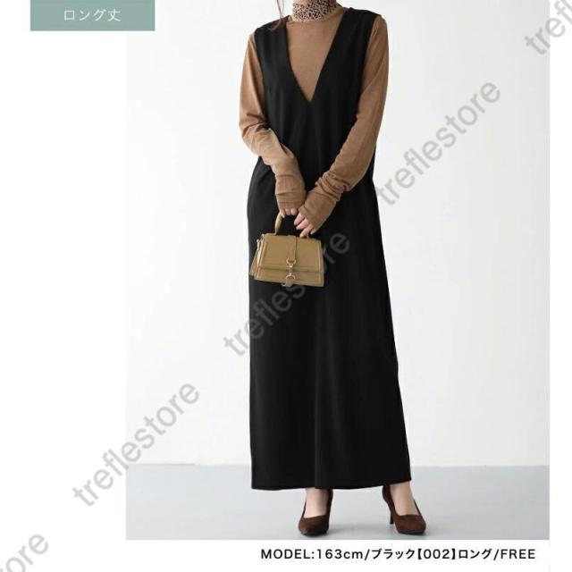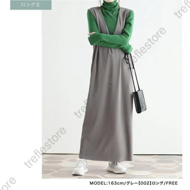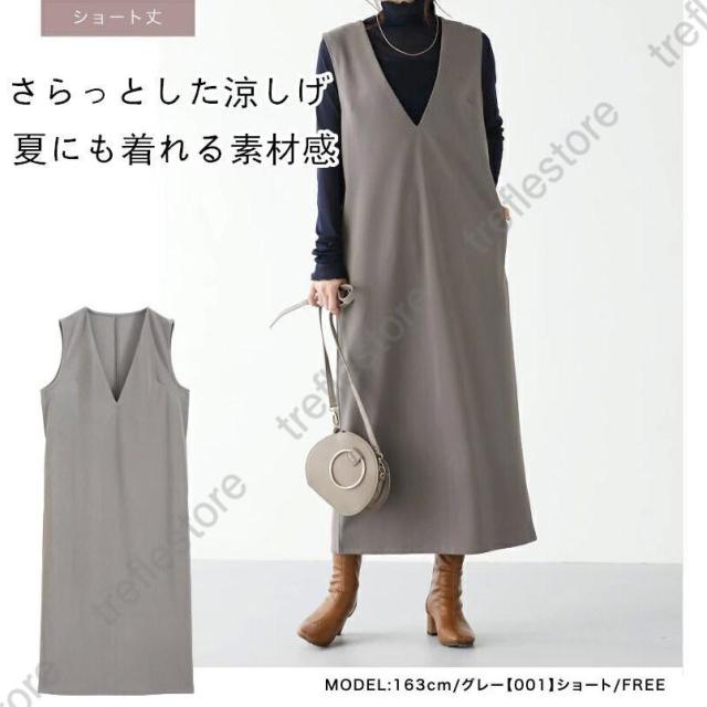 ワンピース ジャンパースカート ジャンスカ 深Vネック スリット入り 深Vネックジャンスカ