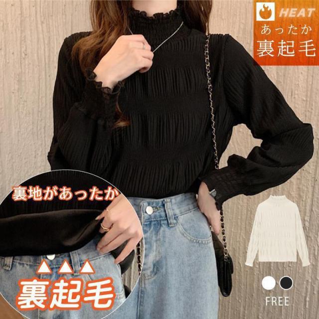 ブラウス 裏起毛フリルハイネック シャーリングフリルブラウス ハイネック フリル 裏起毛