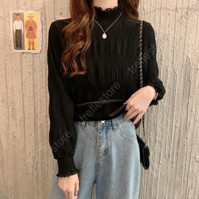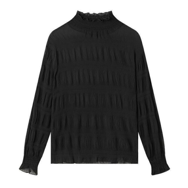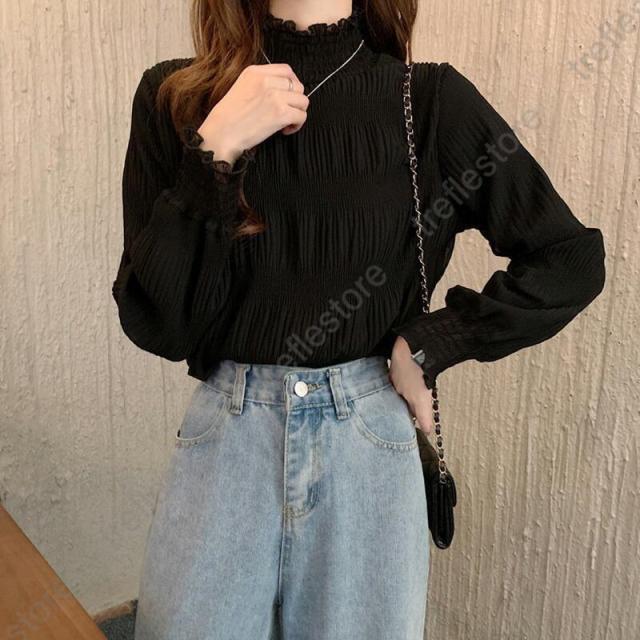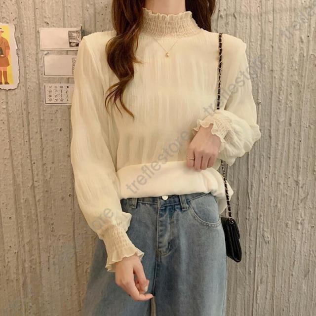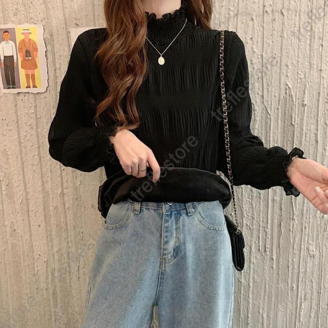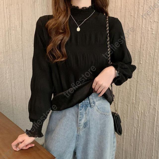 長袖 秋冬 レディース トップス インナー シフォンブラウス レース ゆったり プリーツ 厚手