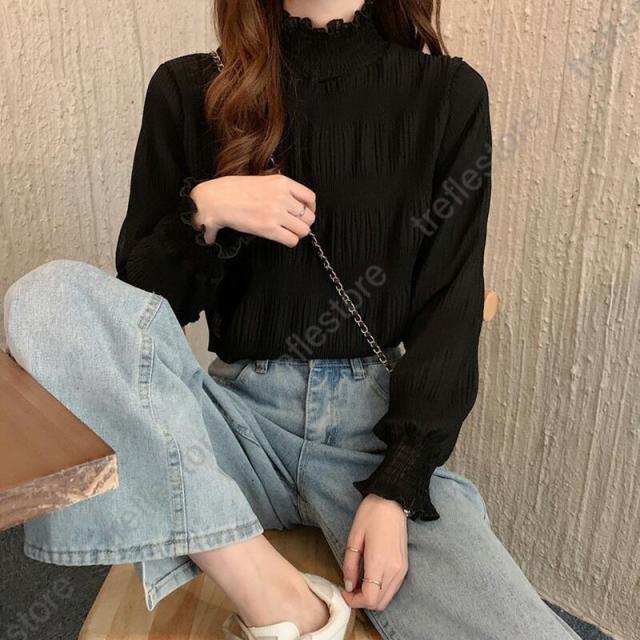 万能フリルハイネックブラウス。