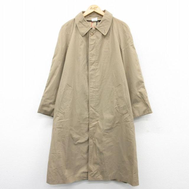古着 長袖 ステンカラー コート メンズ 90年代 90s ロング丈 ラグラン イタリア製 濃ベージュ カーキ Lサイズ 中古 アウター 中古 古着
