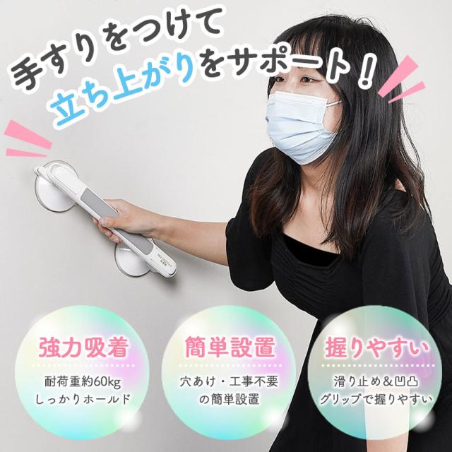 介護手すり 2個セット 吸盤 手すり 取っ手 立ち上がり補助 手摺り 持ち手 入浴 お風呂 浴室 壁 ドア 介護 介護用品 トイレ 窓 ガラス 高齢者 ケア 転倒防止 立つ 立ち上がり 掴まる ハンドル サポート 自宅 家 頑丈 滑り止め 安心 安全 プレゼント 浴室 用 強力 プレゼント