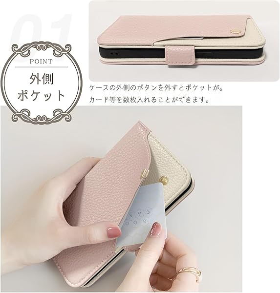 両開きのマグネットベルトタイプで、カードを入れてもペラペラしなくて、ちゃんと締まることができ、鞄の中でカバーが開きません、ポケットの中やバッグの中での誤操作を防止。