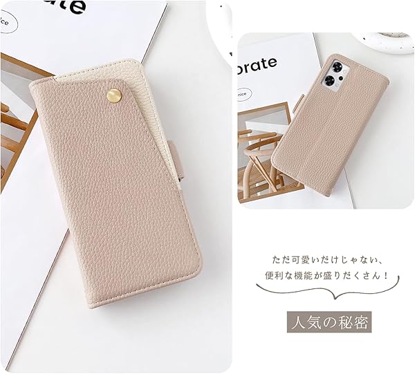 OPPO Reno9 a /Reno7 a ケース 手帳型 おっぽ スマホ 高級PUレザー スマホケース 耐衝撃 カバー 表面ポケット便利 カード収納 スタンド機能 ライトピンク