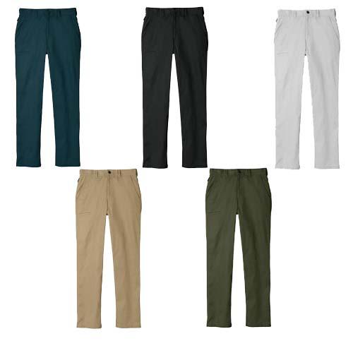■テトロンとコットンの混紡素材を使用したベーシックワークパンツ。