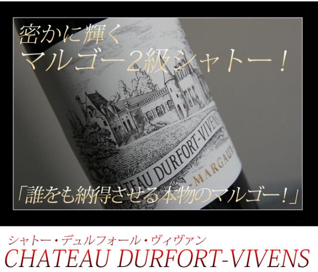 マルゴー村の由緒あるシャトー! 「誰をも納得させる本物のマルゴー」と言われる、 デュルフォール・ヴィヴァン! ぜひお試しください! |