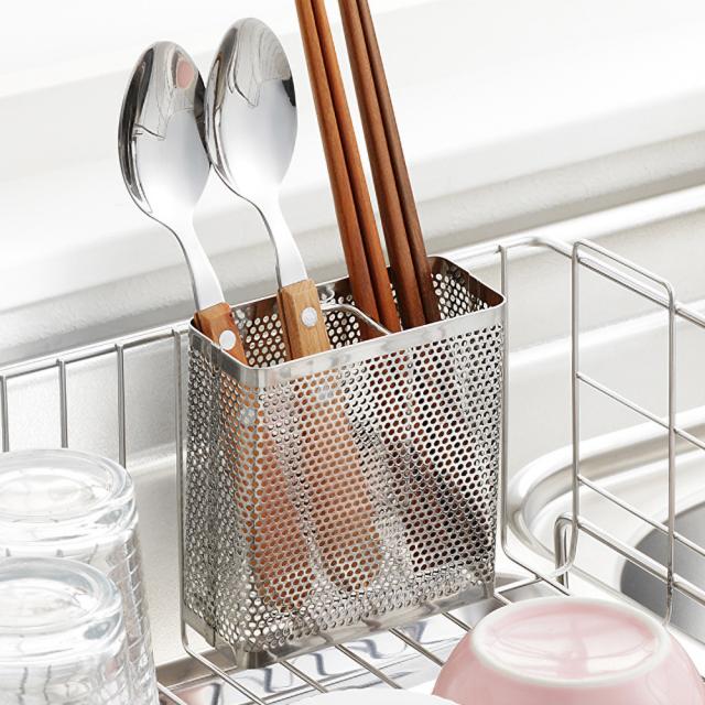 お手持ちの水切りカゴに引っ掛けるだけで箸などのカトラリー類が水切りできます。