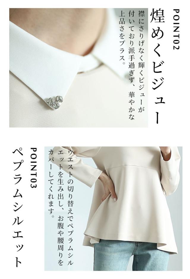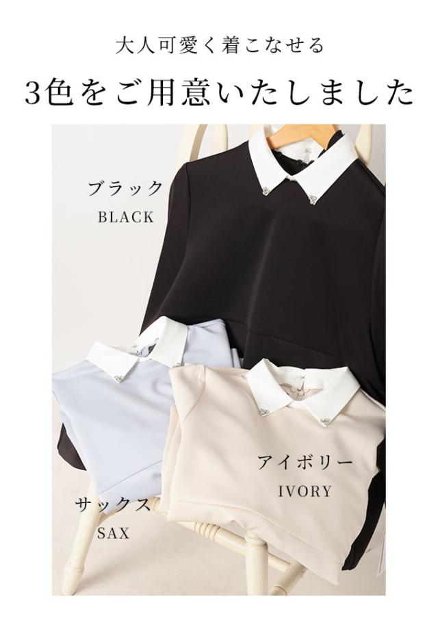 春新作 襟取り外し可能な2wayビジューカラーペプラムカットソー レディース ファッション トップス カットソー Tシャツ ブラック 大人可愛い 40代 レディースファッション 50代女性 ファッション 60代 ミセスファッション サワアラモード sawaalamode otona alwj-735002
