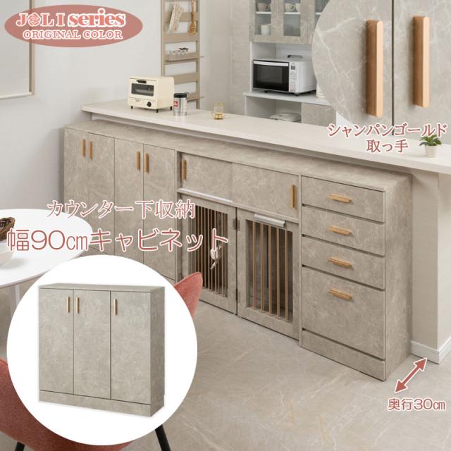 高級感溢れる 大理石調 キッチン カウンター下収納 扉付き キャビネット 幅90 【送料無料】 薄型 奥行30 おしゃれ インテリア 木製 組み合わせ 後付け スリム 間仕切り リビング収納