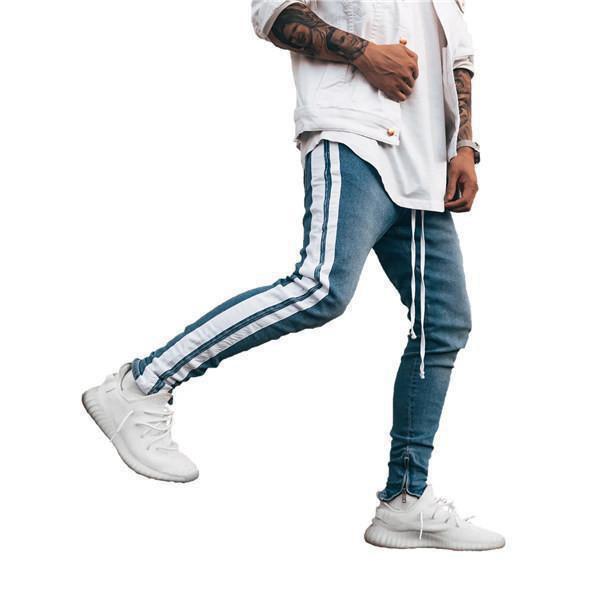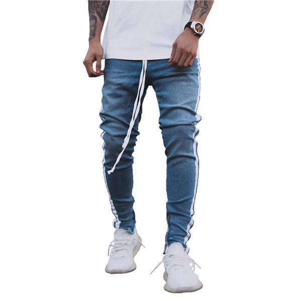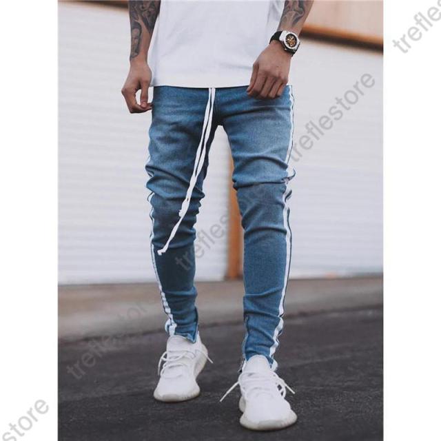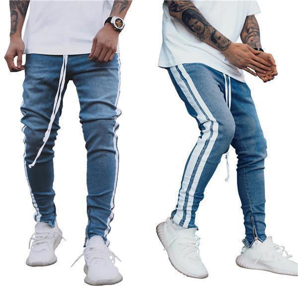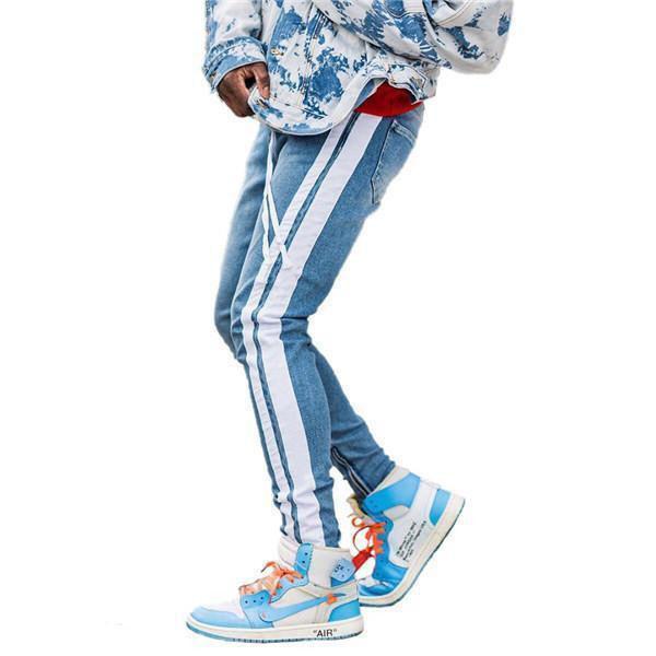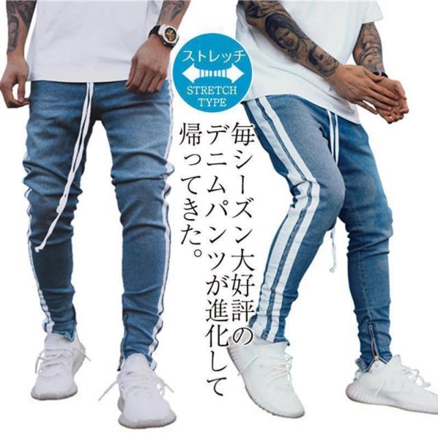 【ポイント5倍!】デニムパンツ メンズ スキニーデニム 細身 サイドライン サイドジップ スリム タイト ジーンズ ジーパン ストレッチ 伸縮 アンクルパンツ ボトムス