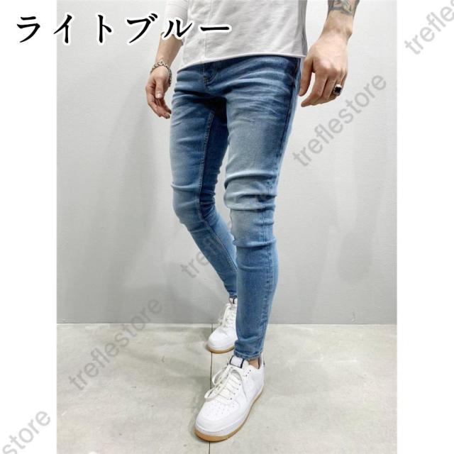 【ポイント5倍!】デニムパンツ メンズ ボトムス ジーンズ ジーパン スキニーデニム ストレッチ ファッション デニムパンツ ユーズド加工 細身 無地 父の日